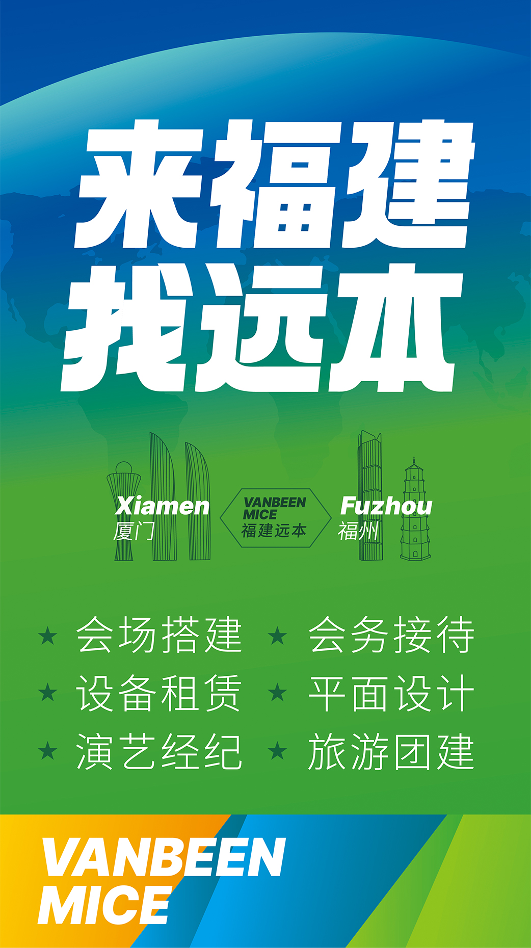 廈門遠本成立于2013年,是一家集策劃設計、落地搭建以及會議接待等全案服務的DMC公司。公司擁有LED屏幕、燈光音響、木作工廠等專業(yè)舞美設備,擁有一批專業(yè)穩(wěn)定的策劃設計和會務接待團隊,能夠快速、精準地為客戶提供優(yōu)質的策劃、設計、搭建、接待等服務。公司已服務過華為、阿里、麥當勞、中國移動、埃克森美孚、興業(yè)銀行、招商銀行、華潤三九、齊魯制藥、萬邦制藥等國內(nèi)外知名企業(yè),并成功入選中國國旅、中旅、康輝國旅、錦江國旅、中智商展、墨馬傳媒等國內(nèi)知名PCO公司供應商庫。